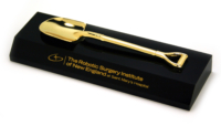 Our specialty is crafting custom groundbreaking desk awards and full-size ceremonial shovels that can be engraved or printed with your logo, event date, or project name. Choose from gold-plated, chrome, or painted finishes to match your event’s theme. We also offer shovel-themed gifts such as miniature shovels embedded in Lucite, custom resin displays, and 3D crystal awards.