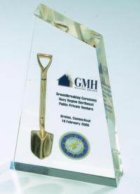 - Lucite-cast shovels embedded with actual groundbreaking dirt for a unique, story-driven memento