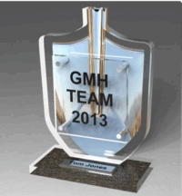 - 3D crystal shovel designs etched with your event details for a modern, elegant award